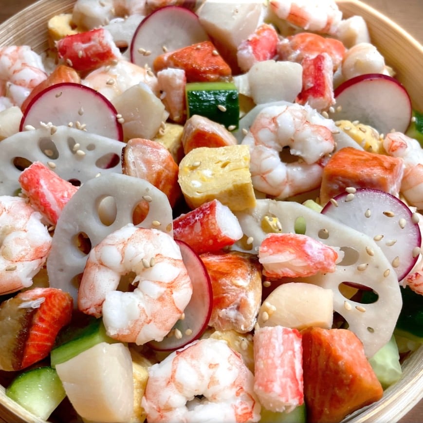 縁起がいい食材を豪華にセットしたちらし寿司の魚介セットです。