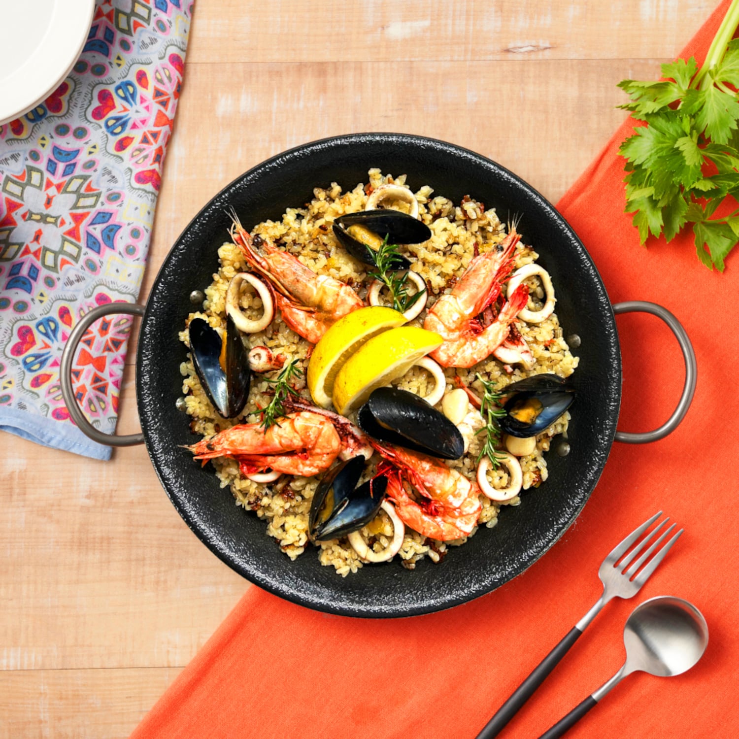 フライパンで簡単調理!海鮮とパエリアスープが一緒になった3~4人前セットが容量変更し新登場。