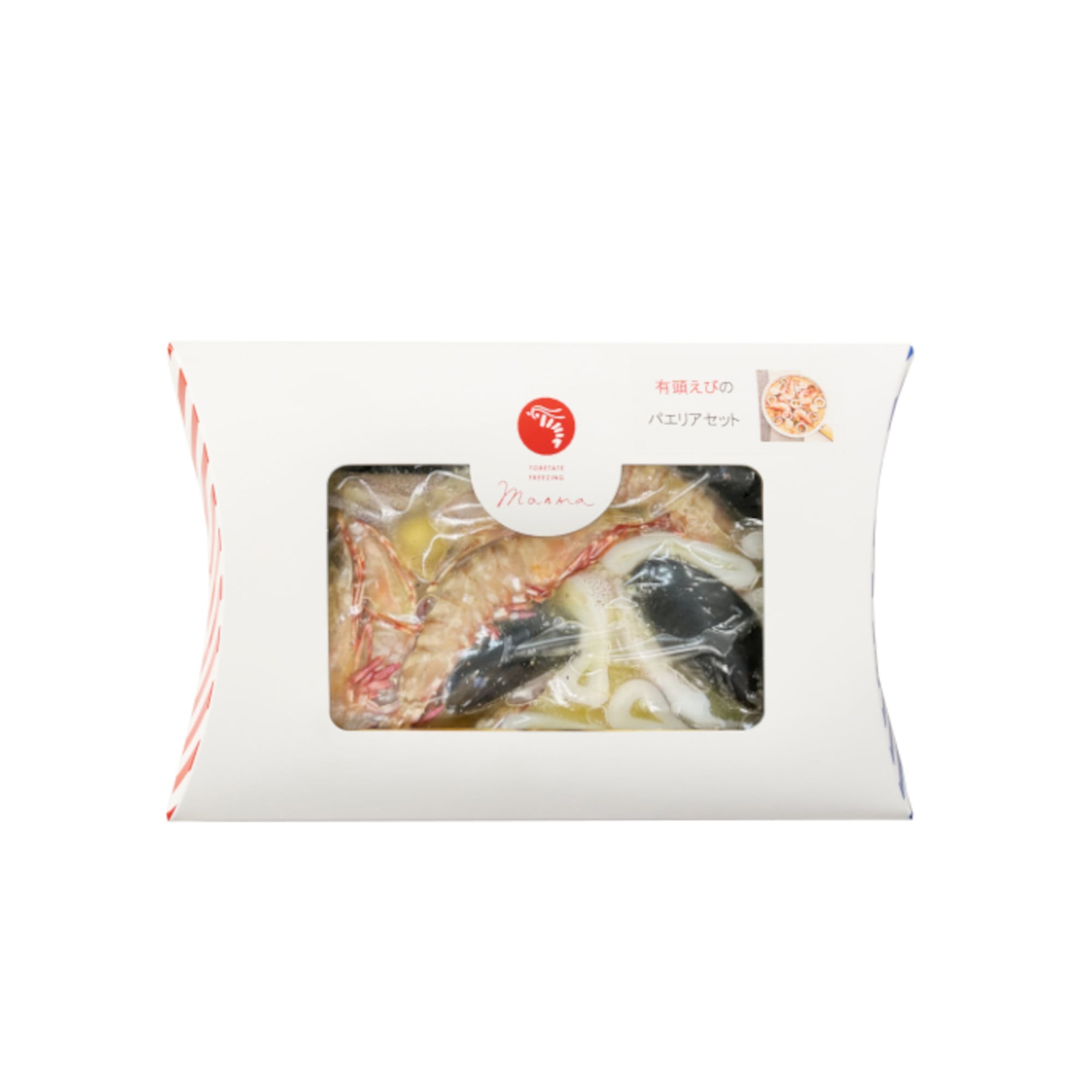 ●原材料: 【具材】船凍天然有頭えび(インドネシア産)、ムール貝(カナダ産)、天然するめいか(国産(日本海海域))、食用オリーブ油(欧州産)、白ワイン(チリ産)、ニンニク(香川県産)、スパイス調味料(アメリカ産) 【スープ】水、チキンコンソメ(国内製造)、塩(香川県産瀬戸のあらじお)、サフラン(国産)(一部にえび・いか・小麦・乳成分・大豆・鶏肉を含む) 野菜(玉ねぎみじん(国産)、パプリカ赤・黄(国産)、バター(国産)、ローズマリー(国産)) 【パエリア米】生米(新潟県産なごみリゾット)