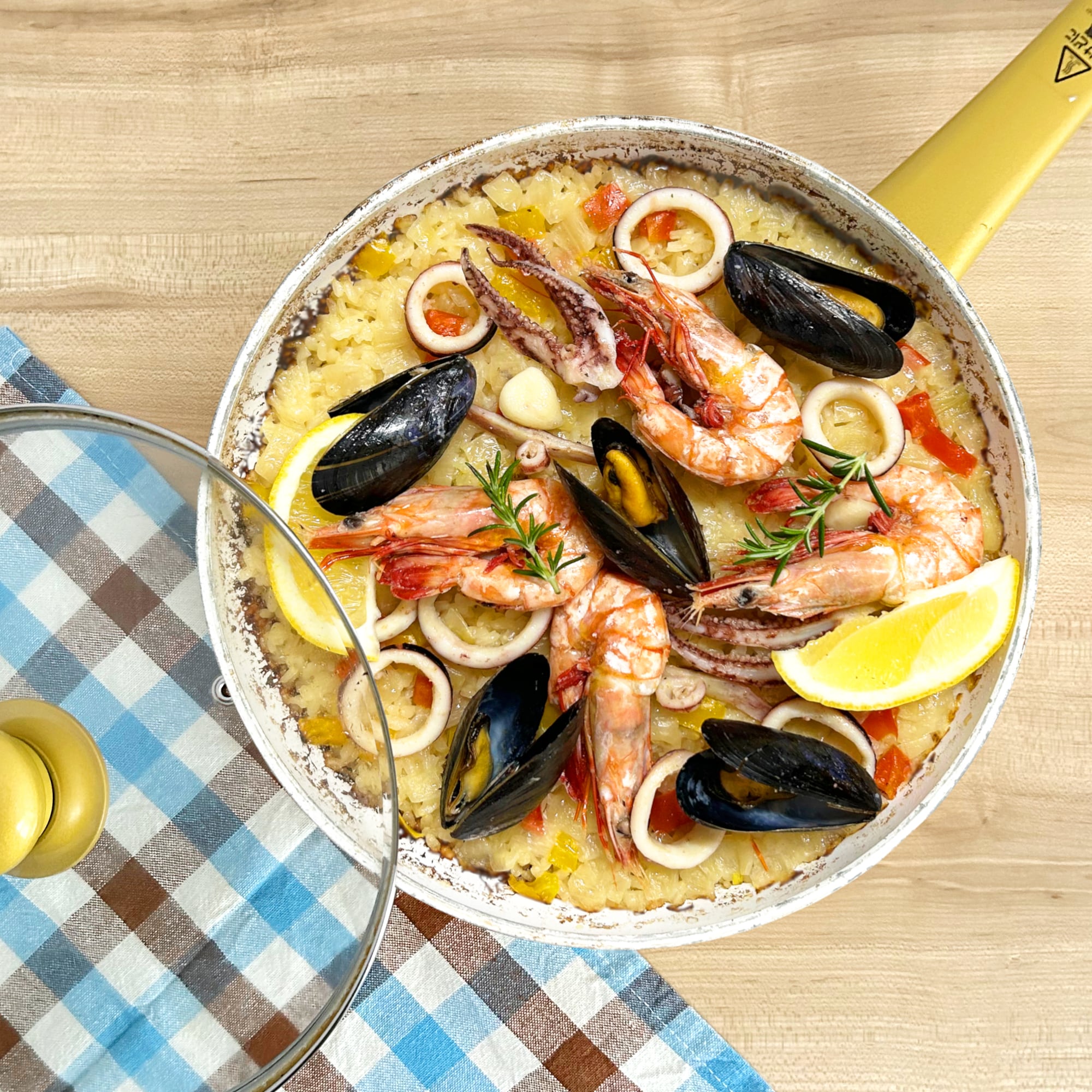 フライパンで簡単調理!海鮮とパエリアスープが一緒になった3~4人前セットが容量変更し新登場。